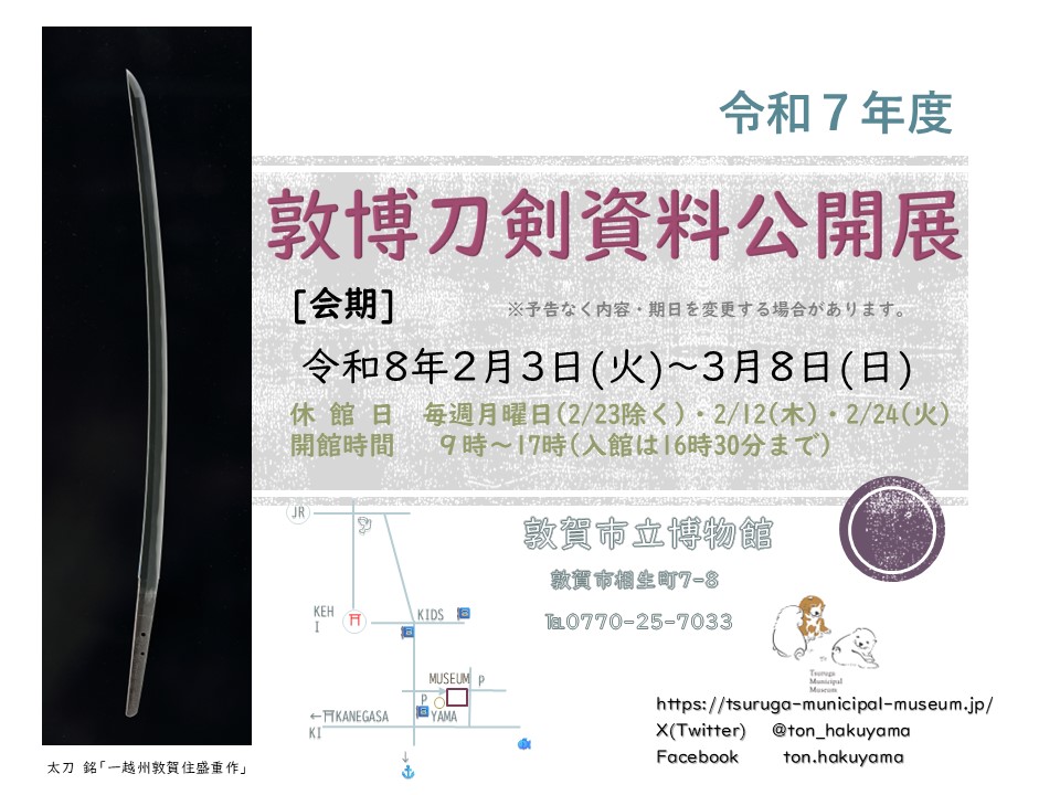毎冬恒例、敦賀市立博物館の郷土ゆかりの刀剣コレクションを公開します。